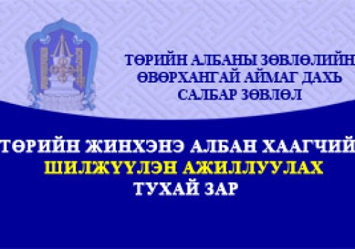ТӨРИЙН ЖИНХЭНЭ АЛБАН ХААГЧИЙГ ШИЛЖҮҮЛЭХ АЖИЛЛУУЛАХ ТУХАЙ ЗАР