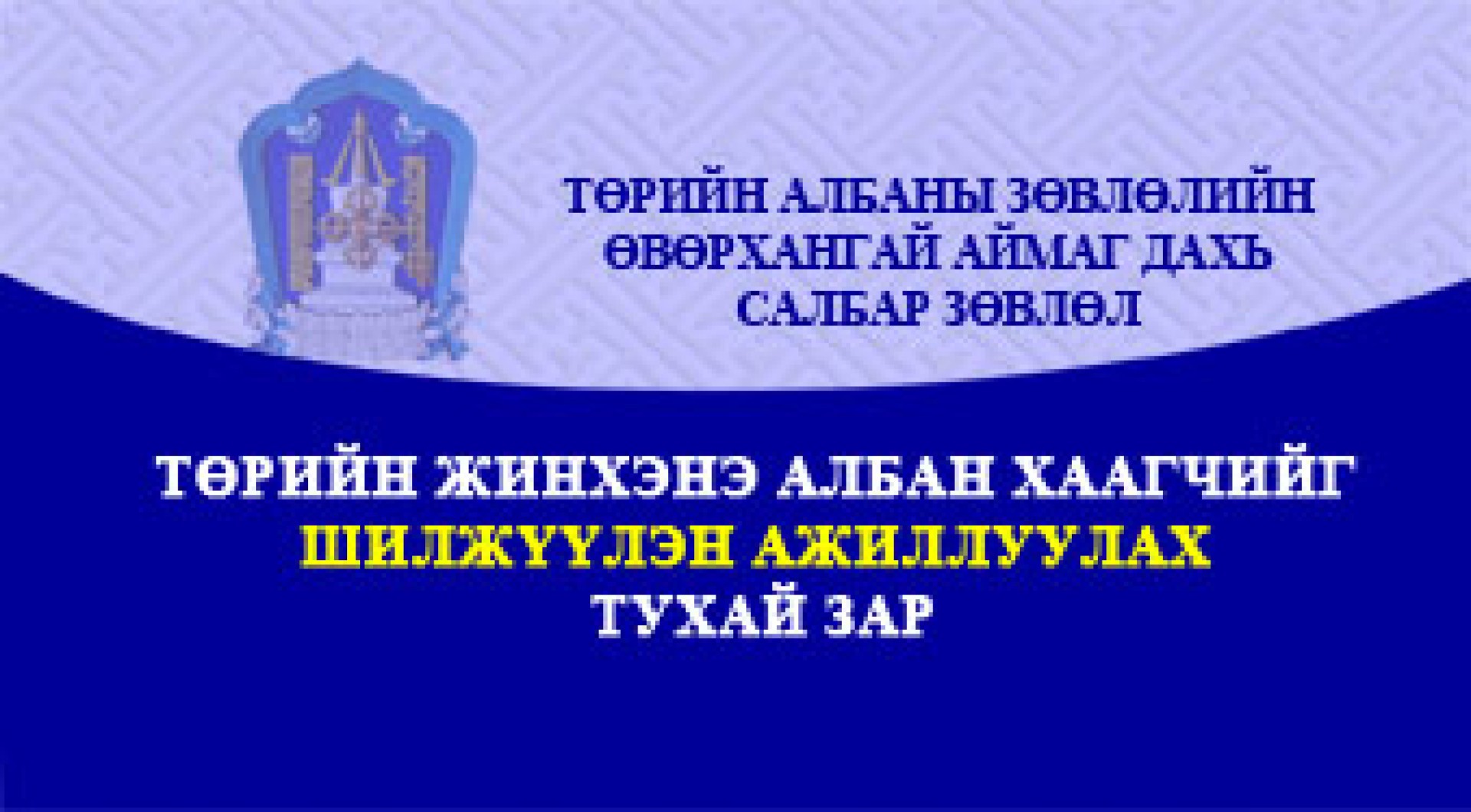 ТӨРИЙН ЖИНХЭНЭ АЛБАН ХААГЧИЙГ ШИЛЖҮҮЛЭХ АЖИЛЛУУЛАХ ТУХАЙ ЗАР